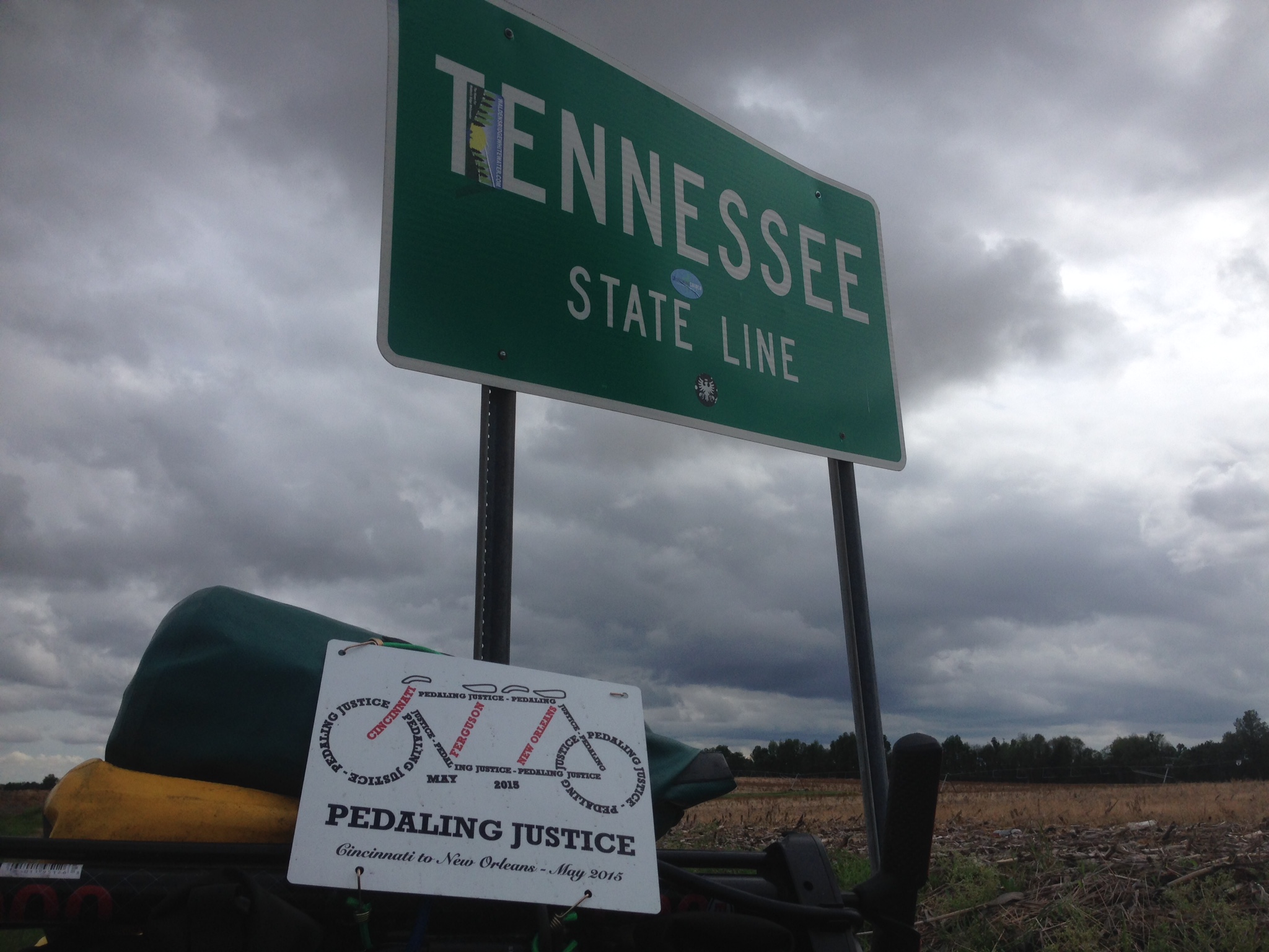 She deserves her own post. I am sure she is excited to get to Memphis where we have a tune up arranged. Tandem’s are stretched-out regular multi-speed bikes. Our Cannondale T2 has two cassettes – front and back. The front has three rings and the back ten. Thus we have thirty shifting options as we climb hills and fight the headwinds. The front and back derailleurs move the chain within the cassettes. Hand levers at the front allow me to direct the derailleurs. We try to pedal at a consistent cadence. When we attack a hill I use the gears to maintain that same cadence as much as possible. When the derailleur is not working in a dependable manner we may slip to a ring we do not intend and it throws off our cadence. That is happening now and it will get fixed we hope in Memphis. When the tandem is working smoothly it is a beautiful thing to behold and a great deal of fun. For the most part our T2 has been great. When we have a problem I call Jim from Jim’s Bicycle shop in Cincinnati and he has been a super resource. Thanks Jim and thanks for being a sponsor to this ride!