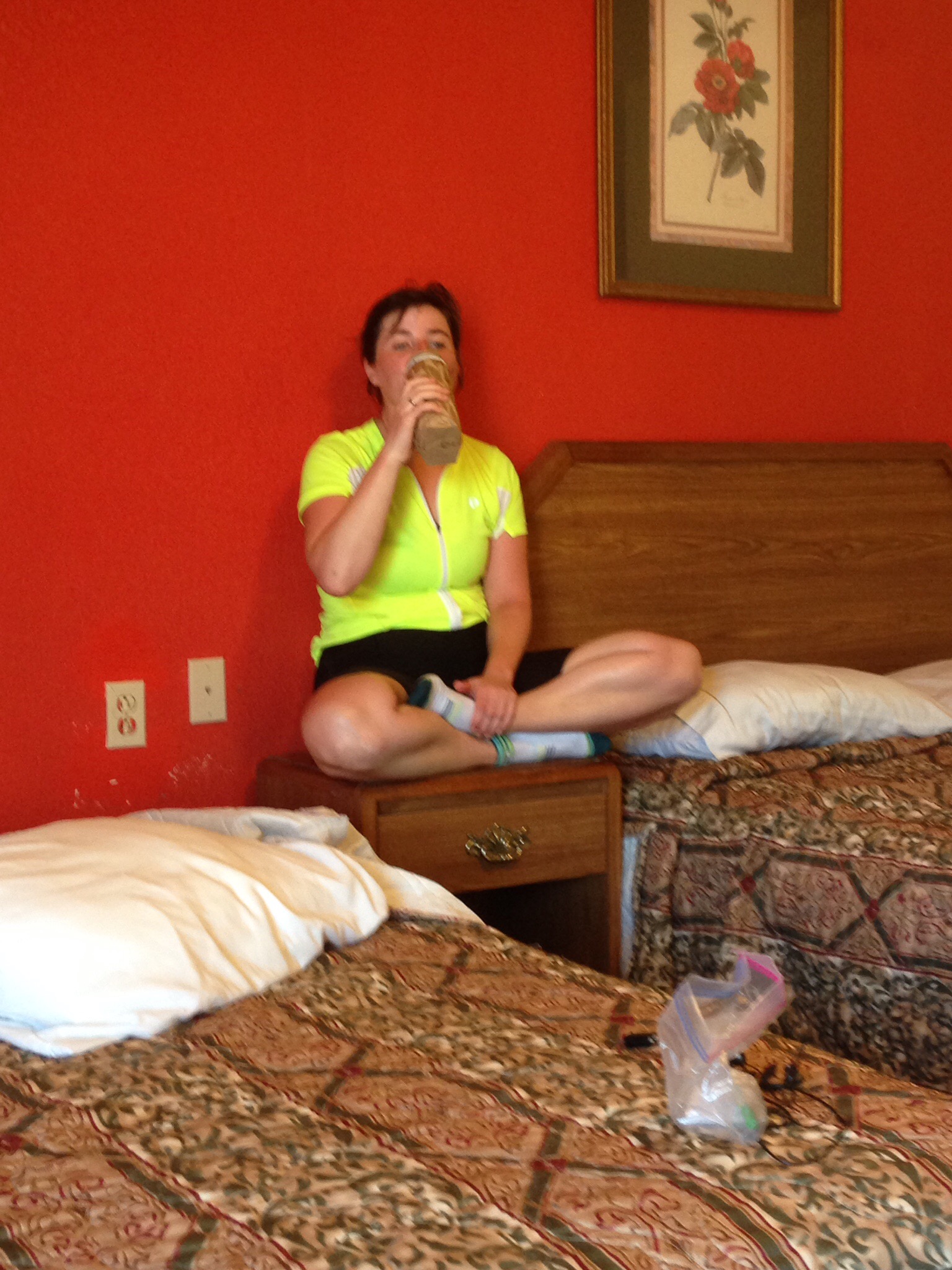 I think this motel was made for people that rode 113 miles on a bicycle. Because we are just that delirious that this bed under me feels kind of comfortable and I’ll have no choice but to surrender to it soon.